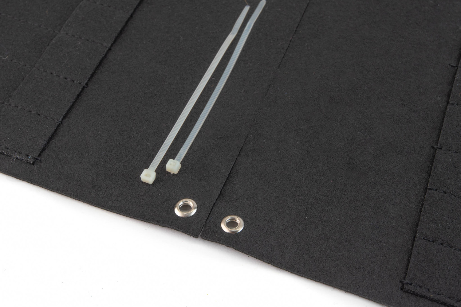 Gli occhielli metallici distribuiti sul supporto consentono il fissaggio a parete. Permettono inoltre di collegare più supporti tra loro per coprire facilmente una superficie più ampia.