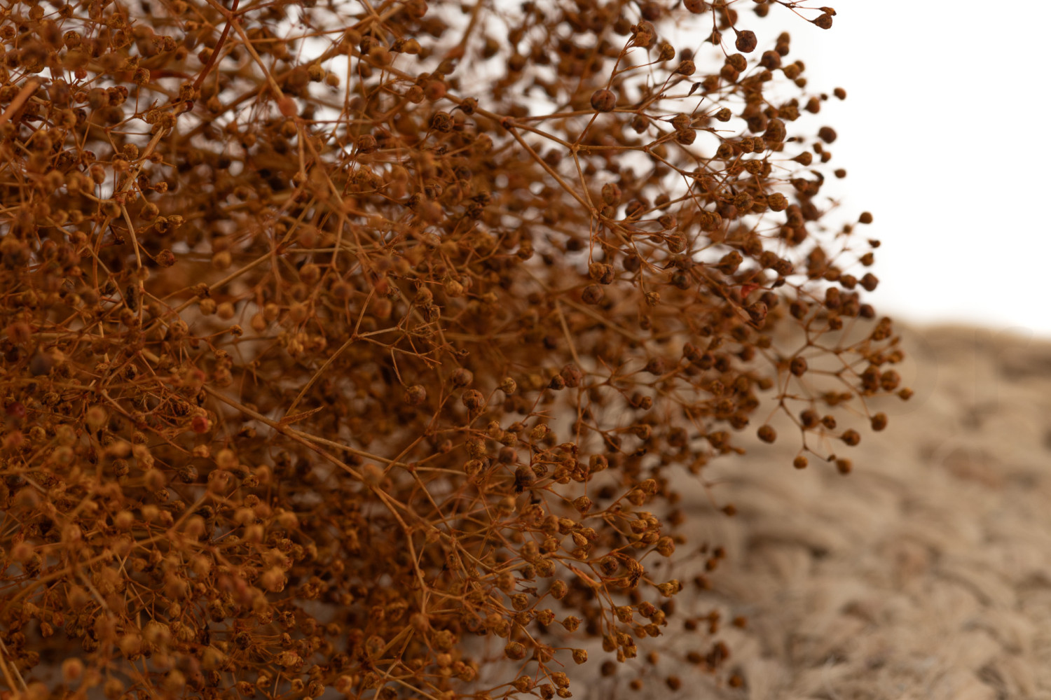 1. Bouquet da sposa : La sua consistenza fine e ariosa aggiunge una dimensione eterea e romantica a qualsiasi bouquet. Nella versione Marmalade, aggiunge un tocco di calore e colore che si sposa perfettamente con i temi autunnali o con i matrimoni in stile bohémien. Completato da fiori bianchi o pastello, crea un contrasto sorprendente pur rimanendo sottile ed elegante.