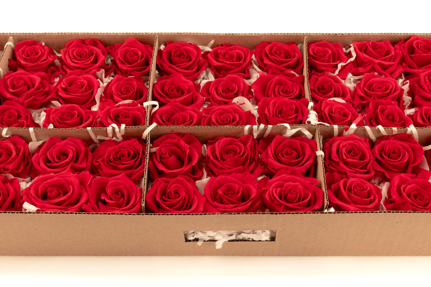 Una scatola di rose alla rinfusa più ecologica, veloce e pratica da maneggiare, che offre risparmio di spazio, imballaggio e quantità per un uso regolare nelle vostre composizioni.